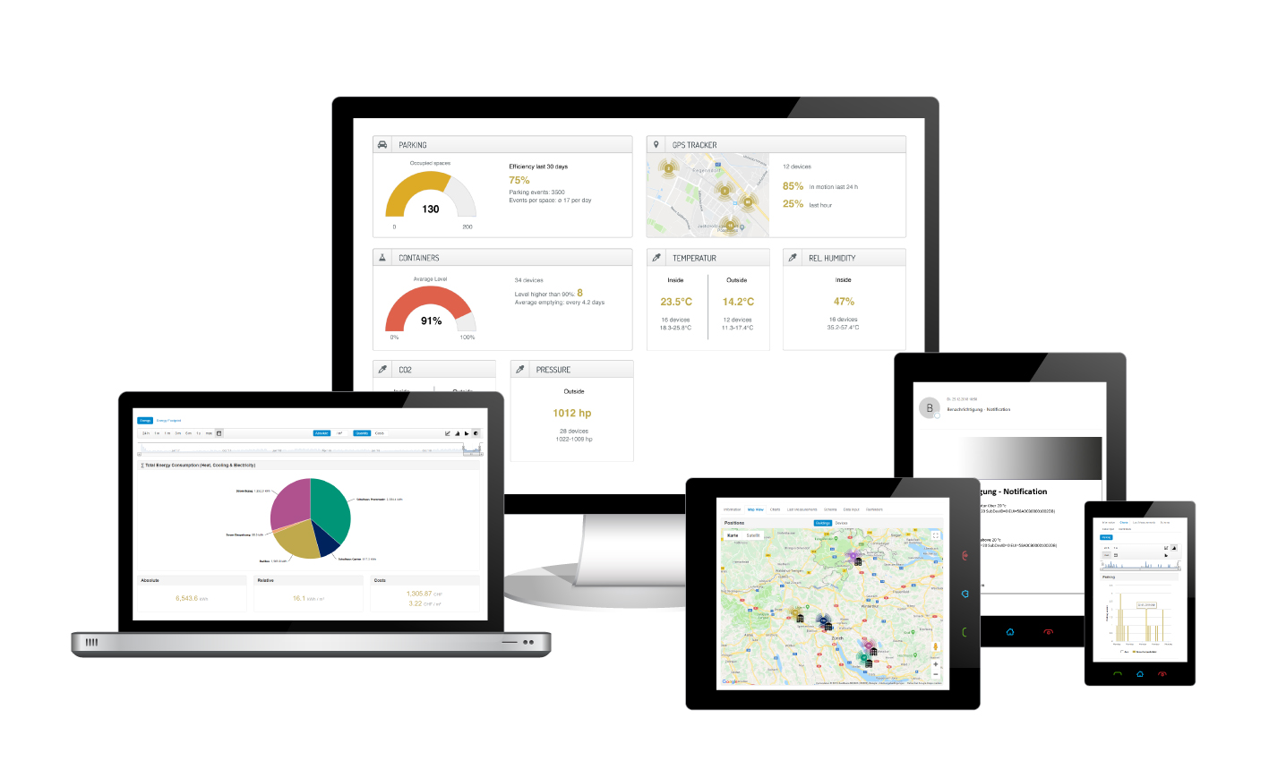 In the B.One Gallery you can directly view the measurement data, actions and histories of your IoT sensors. Design and view your graphs, charts and reports. Create graphical reports of your data and share them with your colleagues, partners, customers or service providers, for example, simply via a web link. The reports can be updated and the recipients only need a web browser. Let yourself and others be automatically notified if things are not as they should be in order to be able to act quickly. Now you can also easily view your reports and dashboards directly on your smartphone...