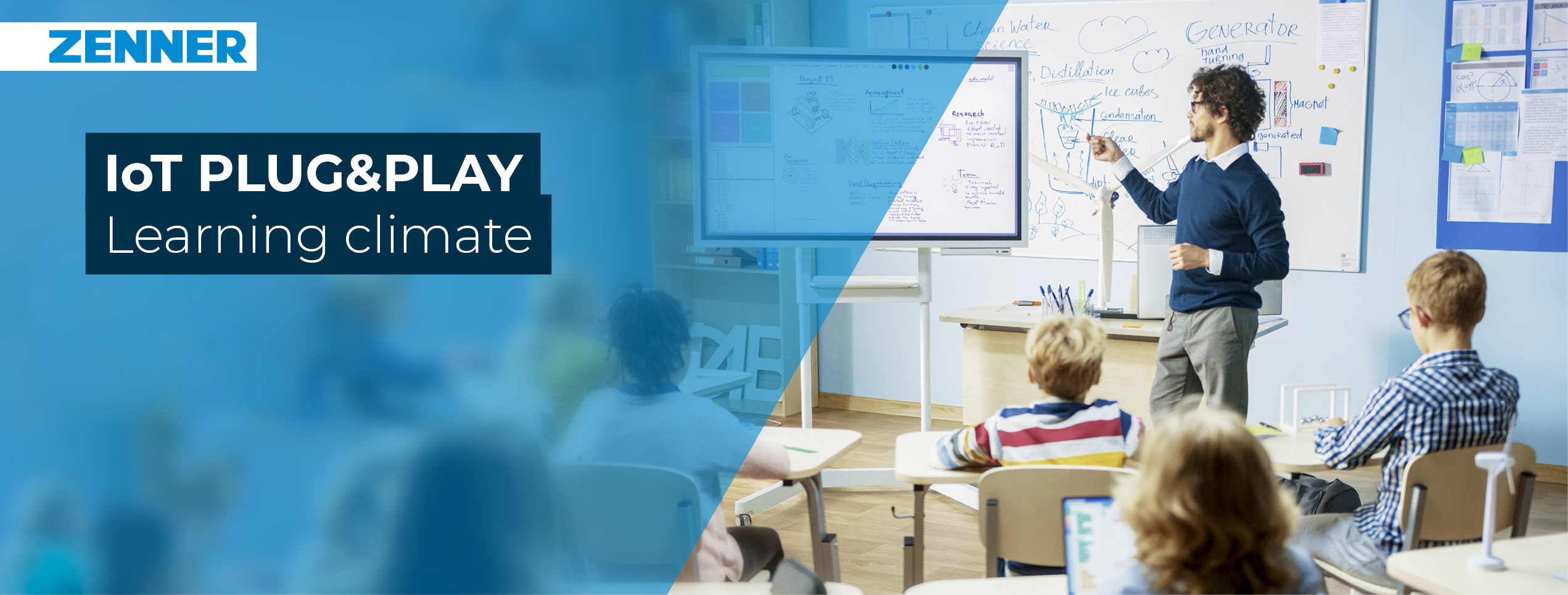 With the new simple ZENNER IoT PLUG&PLAY comfort solution you can ensure optimal monitoring of room climate conditions. Whether in a kindergarten, classroom, lecture hall or training room. An optimal room climate, correct temperature and humidity, as well as low Co2 load, ensures alert minds and a better playing, learning and working climate. You can be informed immediately if the Co2 load in the room is too high or the temperature and humidity deviate and can react to this. Whether visibly for all in the room by means of a Co2 traffic light or only inconspicuously for you as an e-mail to your smartphone or computer.